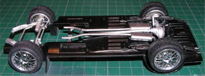 Die Karosserie und der Unterboden haben ihren schwarz metallic Lack erhalten.