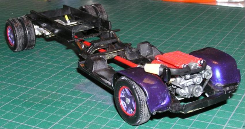 Der Lackierte und mit Kleinteilen versehene Aufbau. Fertig zum Montieren.